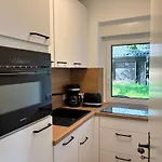 - ❓Does this holiday home feature a kitchen?Certainly, this holiday home provides an equipped kitchen along with an electric kettle, a refrigerator, and an oven.